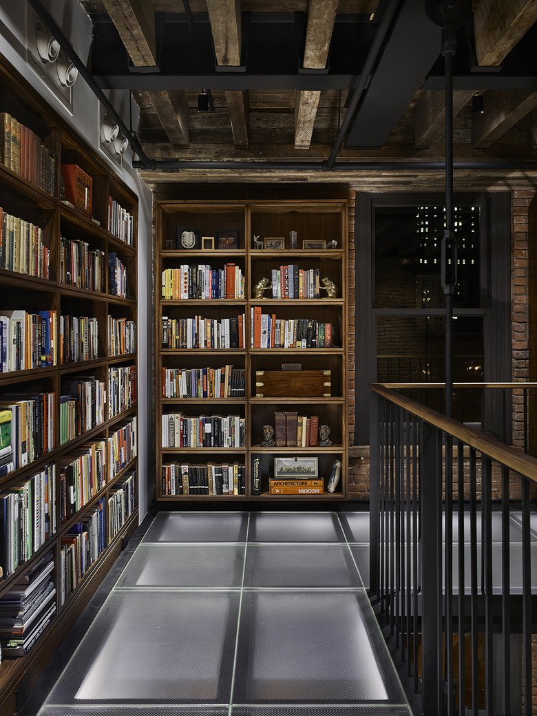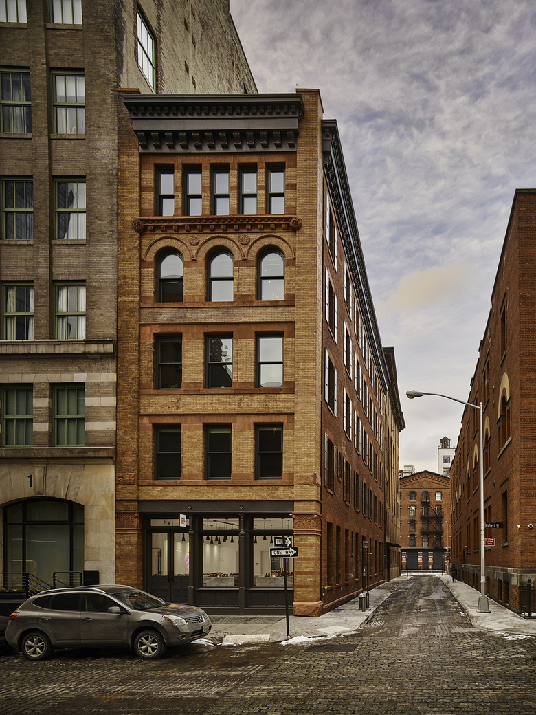 Situated on a cobblestone street in TriBeCa stands an 1892 building, originally designed by Julius Kastner for a liquor merchant, and later taken over by a pistachio baron. As a conservation project, the goal behind 10 Hubert Street was to return the space to its original design, but still channel TriBeCa’s atmosphere. Aside for the interior brick walls being intact, the rest of the dilapidated building left little to reference.