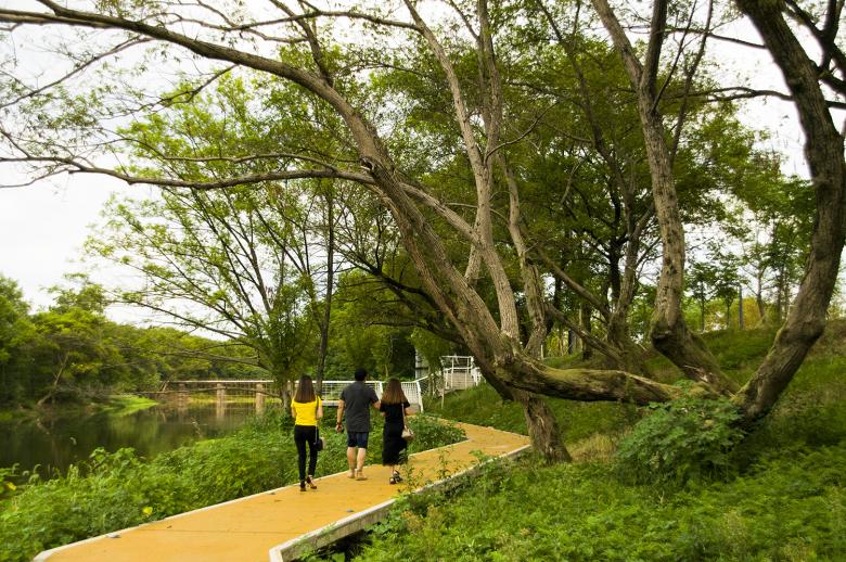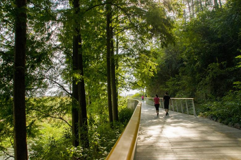 Thirdly, connecting and activating. Winding pedestrian and bike paths and boardwalks are built along both banks of the river; Bridges are built across the river to connect communities at both sides of the river; Resting platforms and gathering places are built to activate the greenway; An environmental interpretation system is designed to tell the natural and cultural stories of the river corridor.