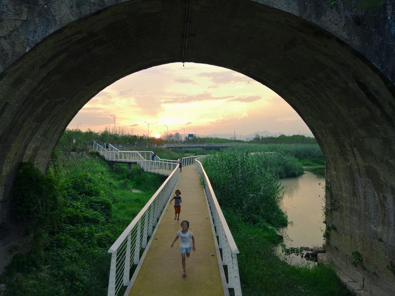 As a result, in just three years, the mother river was cleansed and people come to swim and bathe in the river as they did when they were kids decades ago; The concrete river bank has largely been softened and native vegetation recovered, with frogs and birds coming back and making their homes here again; Continuous pedestrian and bike paths allow the newly urbanized residents to jog and ride in the morning and evening or have a leisure weekend family gathering. The beauty and dignity of the mother river has been restored, in addition to a modern and fresh face featured with contemporary landscape design, and has attracted tens of thousands of visitors every day.