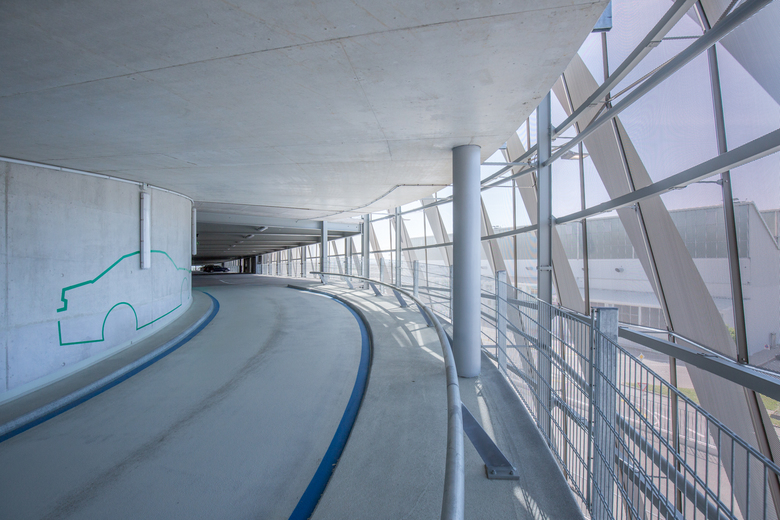 The SAB's space allocation plan includes a service point with waiting hall, ticket sales with offices, kiosk and sanitary facilities as well as an operations control centre. The approx. 1,550 parking spaces of the car park are distributed over the 6 floors above.