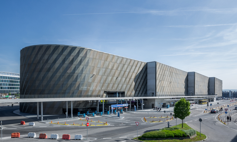 An approx. 210 x 37 m car park (P14) was built in the vicinity of Airport City and the airport terminals 3 and 4. The Stuttgart Airport Bus Terminal (SAB) is located on the ground floor of the new building. The long-distance bus station designed for the city of Stuttgart has a total of 18 bus platforms, which are served by national and international long-distance bus lines as well as local buses.
