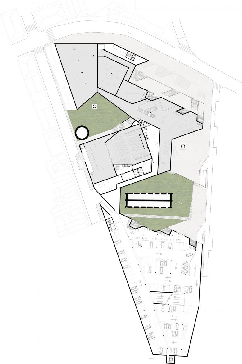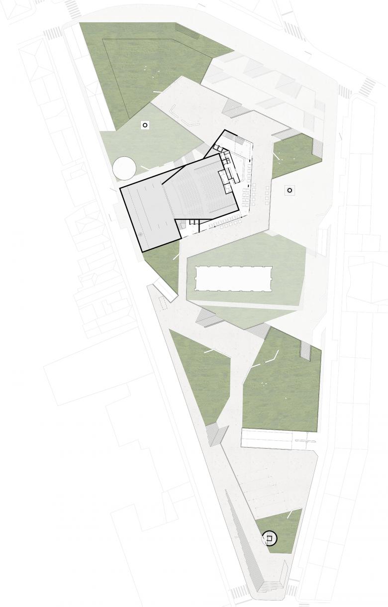 We can summarize the project as a building that lets itself be shaped by topography and history, its unusual design being less of a formal whim and more of an affirmation of the relationship with the archaeological heritage and the ground.