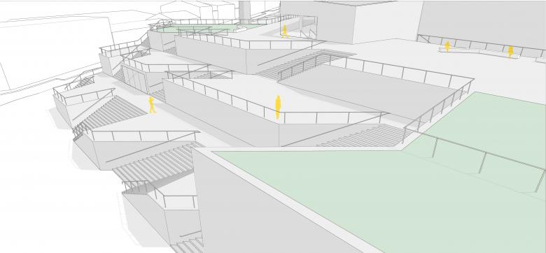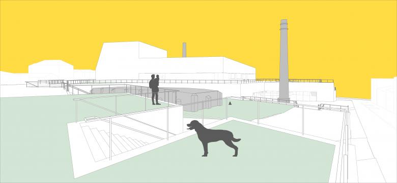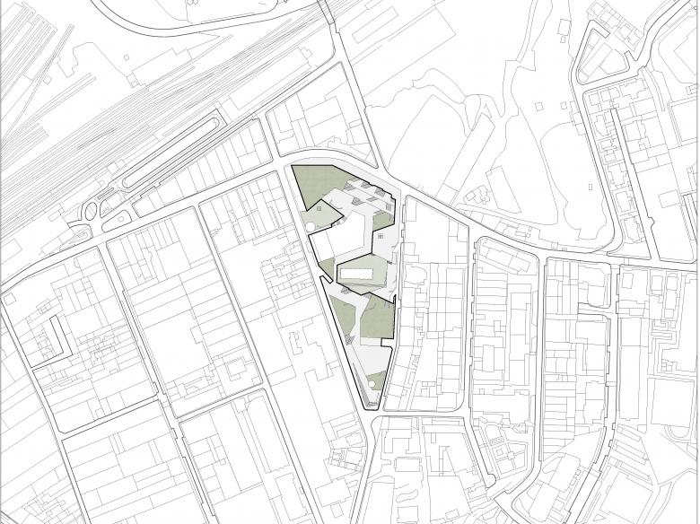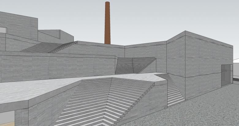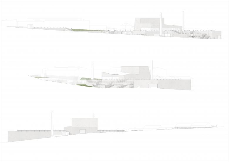 Gaia Environment Museum is a proposal for an architeture competition set in Gaia, Porto, Portugal. Its start point generates a sequence of spaces that wind through the land of the former Fábrica das Devesas, enveloping and framing the factory pre-existences. Thus, as the building develops across the land from the lowest to the highest level, it creates several squares which main element are those pre-existing ones: the two chimneys, the French oven and the circular oven.