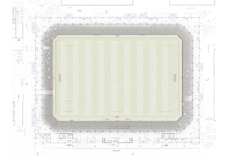 It is only due to the strong cauldron effect of a stadium that a truly rousing match atmosphere is created. The more enclosed the bowl and the closer the spectators are to the action, the more dramatic that effect in the football arena can develop. The compact form utilized here purposefully keeps the sound and lighting within that cauldron, thus preventing the disturbance of the surrounding urban environment.