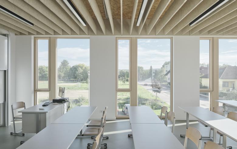 Situation löst die Eingangssituation auf Straßenniveau, dadurch wird städtebaulich ein Ensemble mit der NMS gebildet, die in Retz ein neues Stadtviertel, einen Bildungscampus entstehen lässt. Die Beibehaltung des Charakters