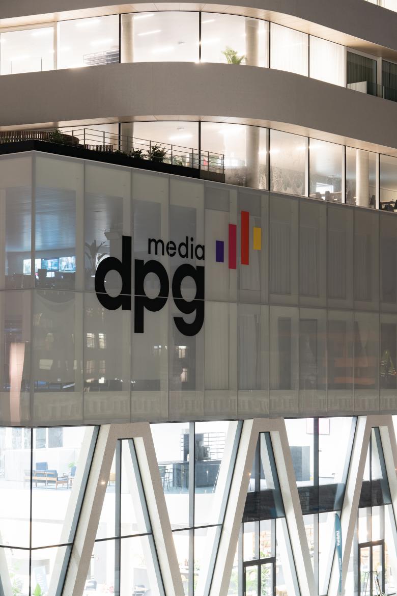 The building provides a generous public ground floor with a mezzanine containing a brasserie-restaurant, coffee corners and various multimedia configurations that propagate the economy of DPG Media 24/7. The façades have been considered from all sides, resulting in each façade being equal in relation to the others. The building materials are sustainable and contemporary; reflecting the international character of DPG Media.