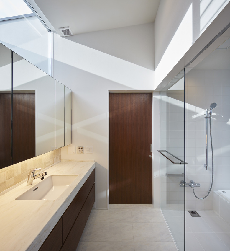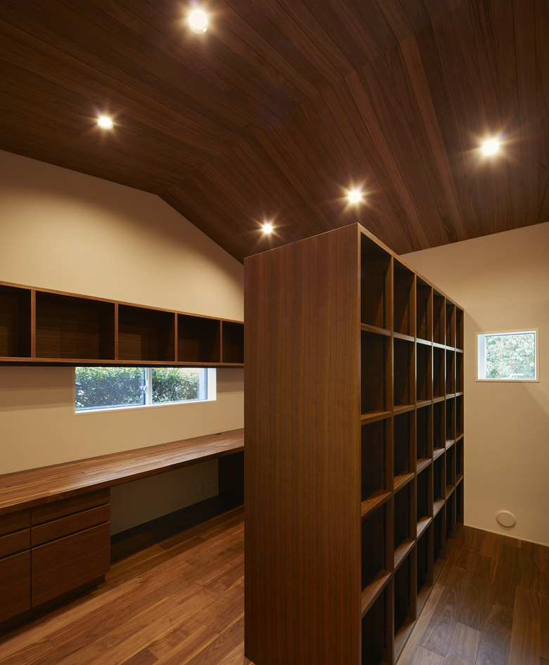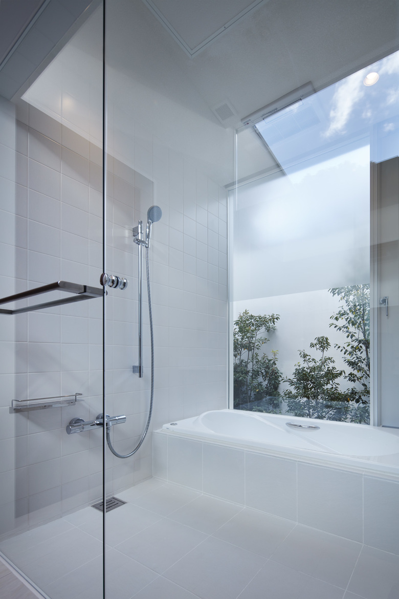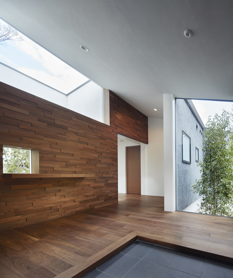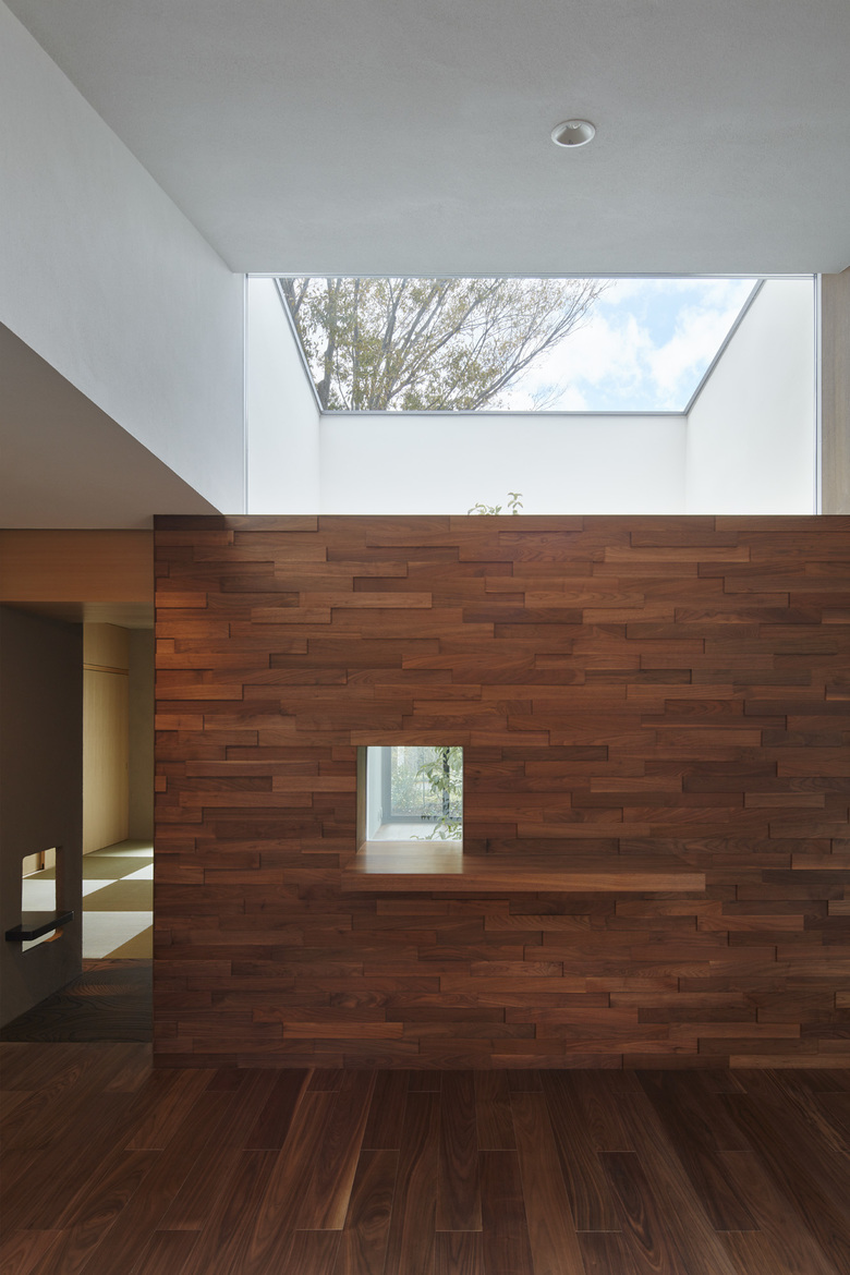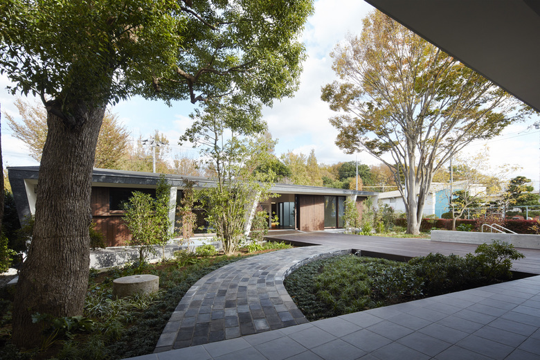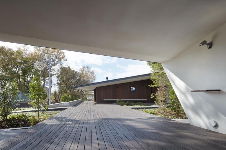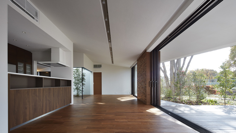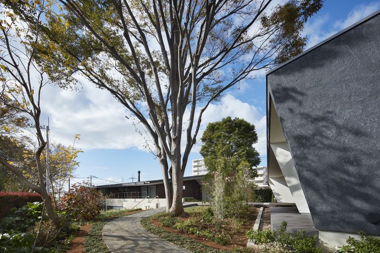 The garden surrounded by large zelkova and camphor trees on the site and the two houses is the centerpiece of the project, loosely connecting the two houses.
