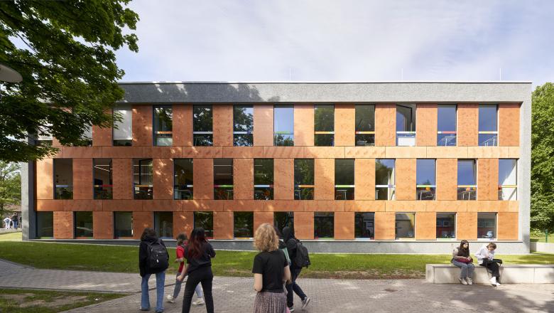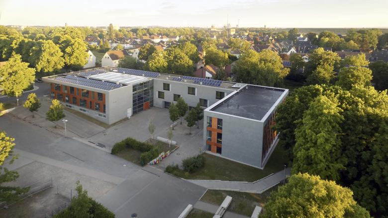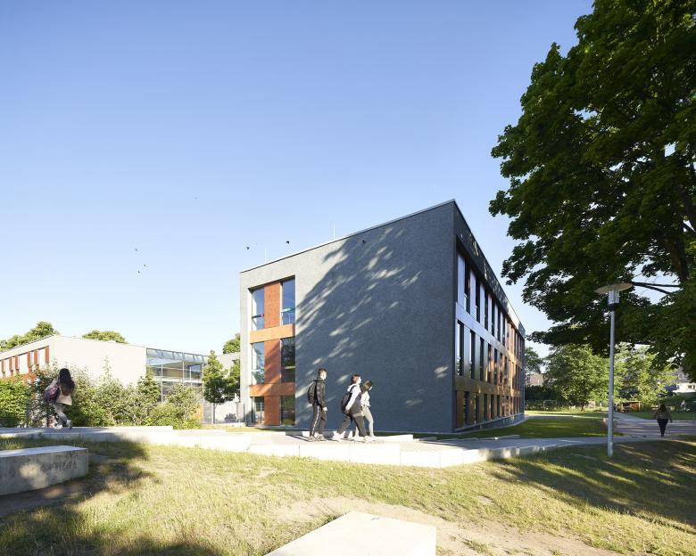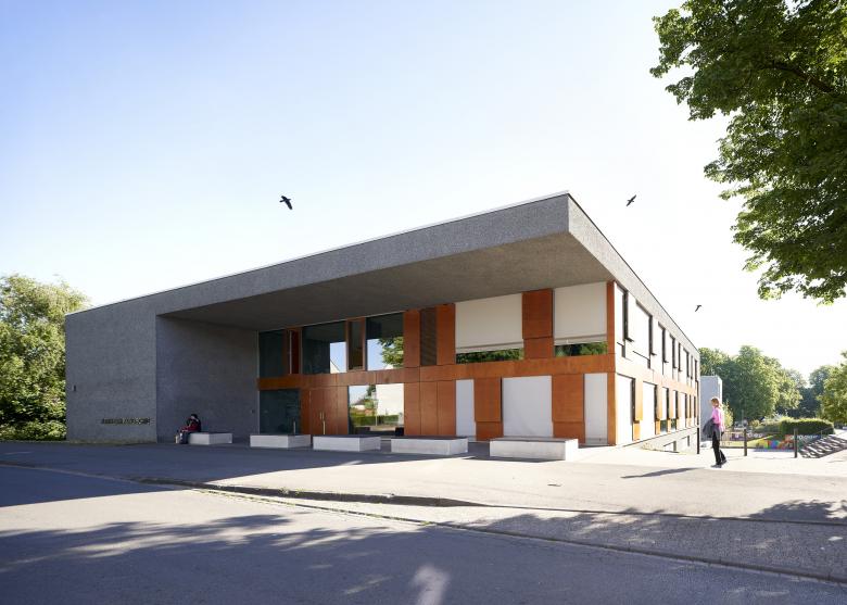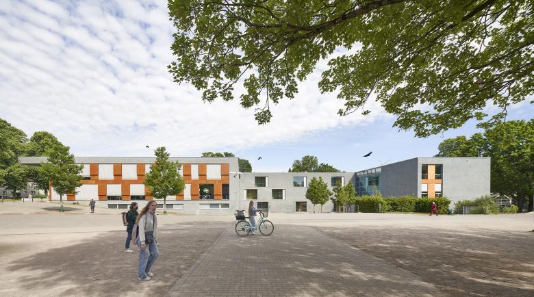 The extension of the Martin-Luther-King-Comprehensive-School took place in three construction phases. The aim was to reorganize the heterogeneous structure of the school grounds and to bring them together in a functioning overall system. Due to the arrangement of the building parts, it was possible to create a multifunctional auditorium for 300 persons, which was also needed in the outer school area for the district.