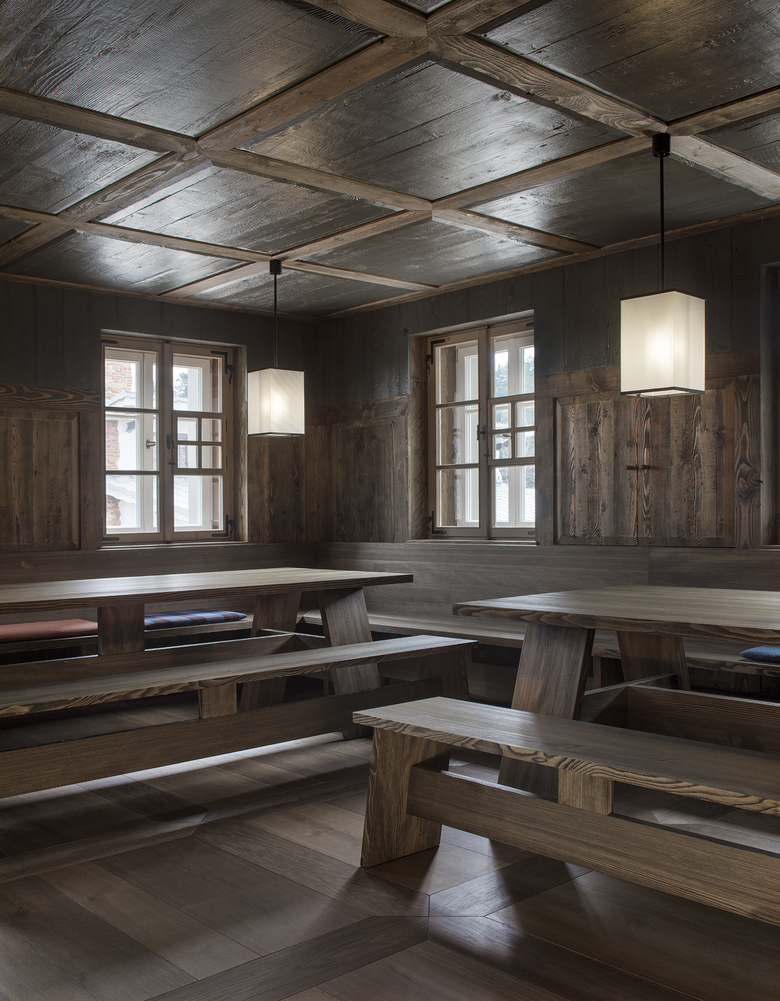 In close cooperation with Monkey 47, Philipp Mainzer developed an architectural concept which points out the distillery as a rural, pre-industrial business site, focusing on the product, the renowned dry gin Monkey 47. With a special emphasis on local craftsmanship and a devotion to elaborate detail, primarily local materials were used, conveying authenticity and simple functionality. The design of the façade is based on an interplay of shingled and clad wood fronts, plastered wall surfaces and small-scale window structures as well as extensive glass and steel elements. In addition to the installation of a new lighting system, PHILIPP MAINZER removed all distracting elements of the interior, creating a clean space with pure lines and surfaces, referencing local construction methods.