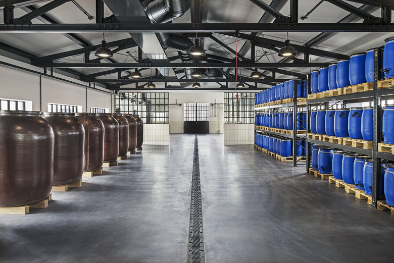 PHILIPP MAINZER OFFICE FOR ARCHITECTURE AND DESIGN completes the construction of a high end distillery with adjacent head offices for Black Forest Distillers in the rural community of 24 Höfe near Loßburg, Germany – where the roots of the Schwarzwald Dry Gin Monkey 47 originate. Comprising a total of 1,400 sqm, the project led by Philipp Mainzer features the production and distillery building, a degustation and tasting space as well as a landmarked grain storehouse, which is the historic heart of the estate and which functions as a small museum featuring the ingredients of the gin.
