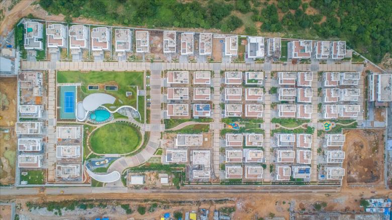 The Master Plan lays out a mosaic of plots, villas, tree lined boulevards, large and intimate landscaped zones, all hinged together by the central park.It is this central park that really traverses the site from the distant end to the central maidan and the club that rises from the ground.While the deep rooted idea of having each villa develop as pavilions around a courtyard with the proposition of having the villa set in the garden and the garden set in the villa. Over time, it turns out that the site too would respond to its immediate context as an urban courtyard within the neighborhood - remaining true to its name and character.