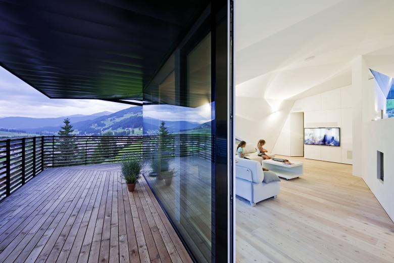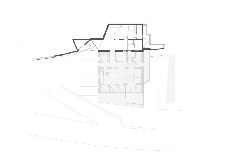 In 2014, to the neighboring Residence Alma, a guesthouse built in the 1960s, got rid of an underused pitched roof , a previously non-existent vertical circulation and the dwelling for the host family were added.