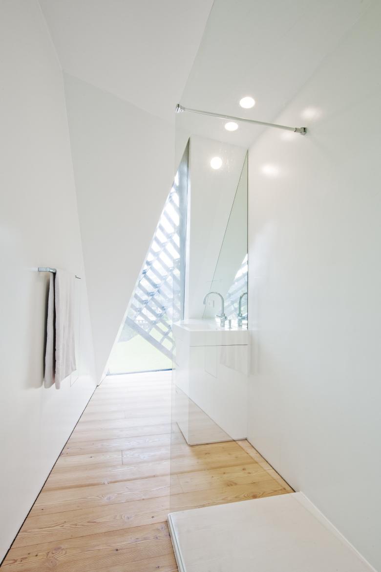 Due to the immediate neighborhood of the Strata Hotel, the theme of the wooden stick was readopted: this time, two bands follow the geometrically complex volume, pushing behind and over the white existing cube and joining with the surrounding topography. The interiors benefit from differentiated external spaces, which open up between the building volume and the wooden sticks, light openings provide panoramic views and bring the sky deep inside the building - a variation on the theme.