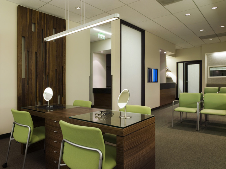 The owners of Peninsula Ophthalmology Group requested a medical office that would be enticing for their patients and stimulating for their staff. In addition to the reception space, exam and staff rooms, there is also a retail area for the sale of eyewear. The material palette and detailing avoids typical clinical references and promotes good design as integral to good healthcare.