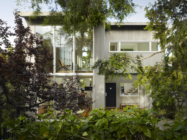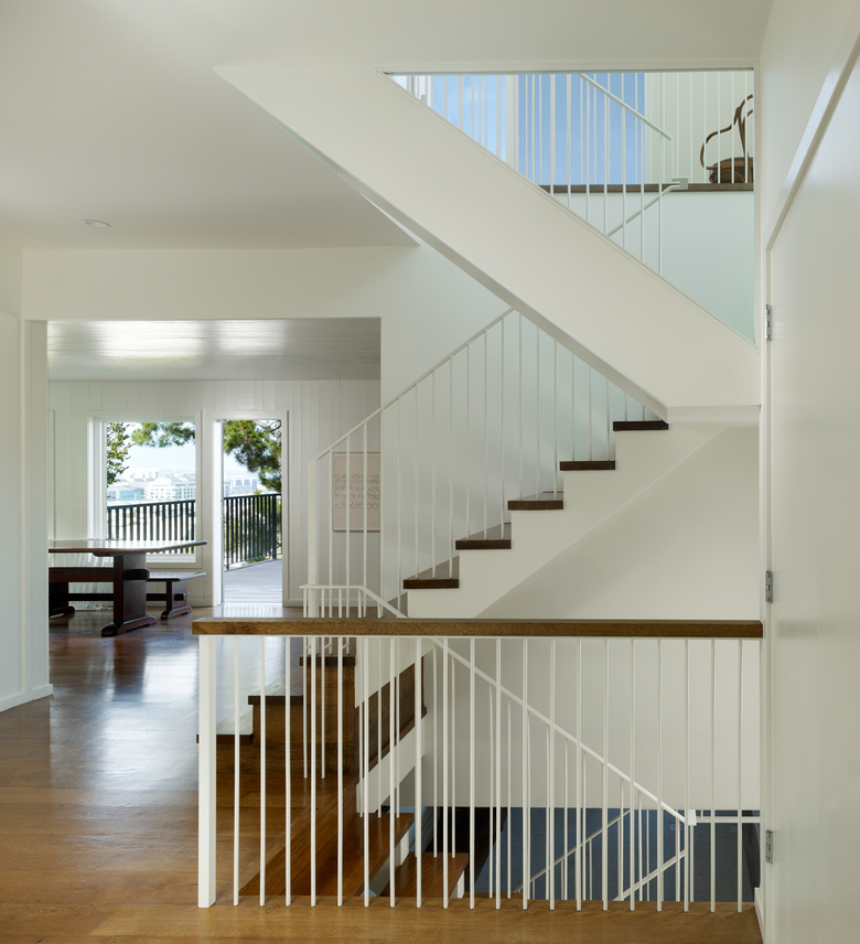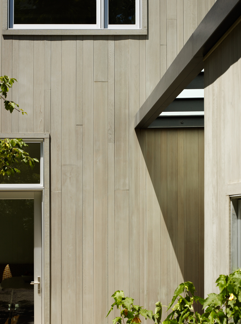 The triple-wide, hillside lot and expansive views provided a unique setting for a city property. Working within the existing footprint preserved the site's extensive open space and the protected garden areas while maximizing construction and material efficiency. The variegated FSC-certified cedar siding recalls the pattern of the historic interior paneling while also integrating with the modern aluminum, steel and glass details at the exterior. Inside, reclaimed wood, wool, ceramic, and stone form a natural and tactile material palette. The addition's symbiosis with the existing building resulted in a modern vernacular architecture that celebrates the remarkable qualities of this singular urban environment.