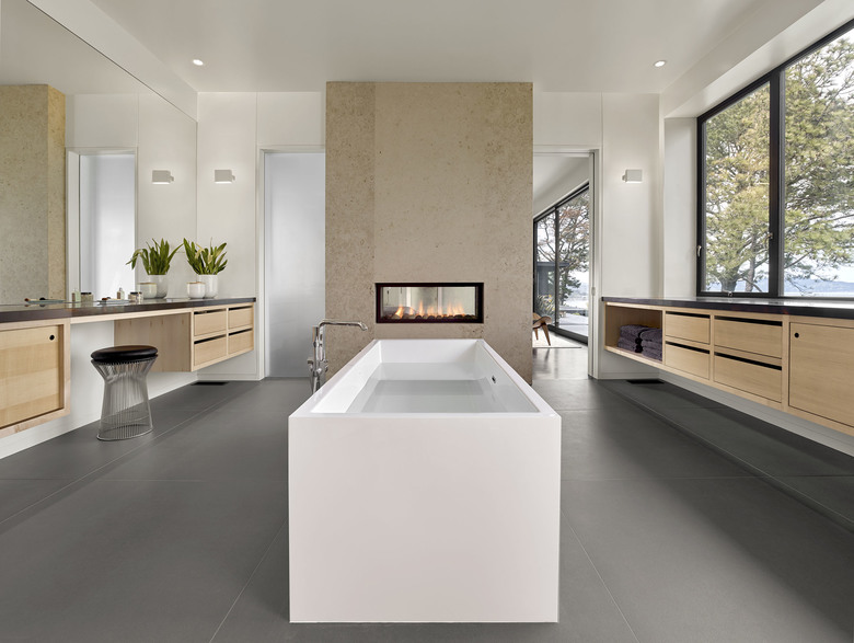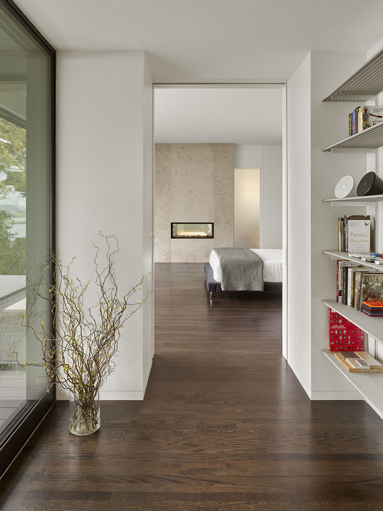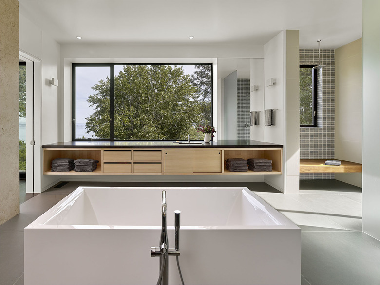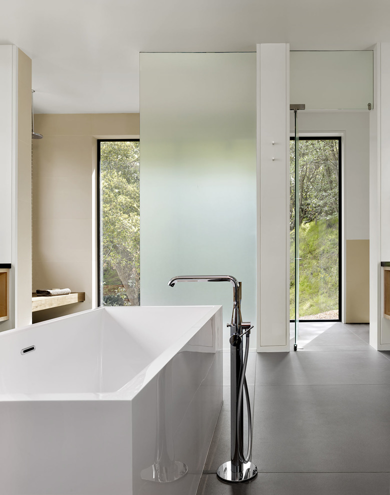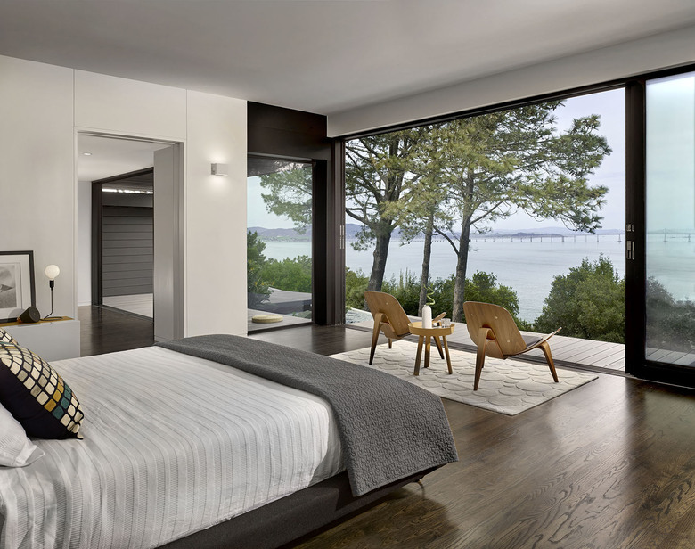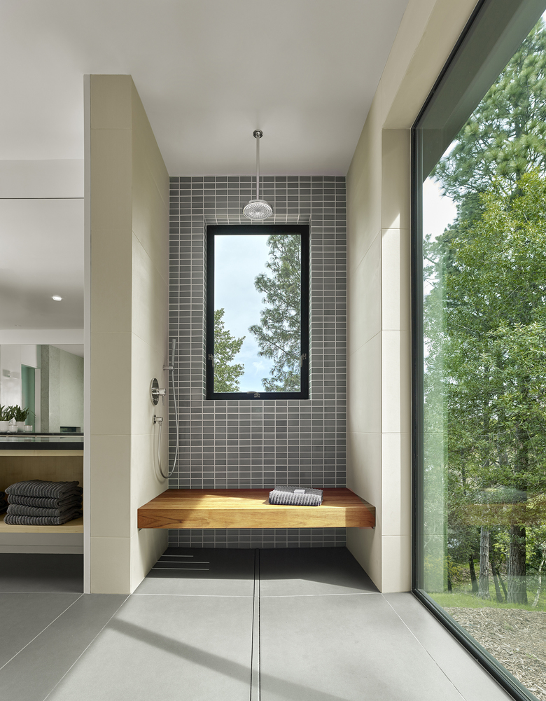 Teaberry is a master suite addition to a simple, single-story mid-century house. The owners dreamed of a modern retreat immersed in nature. Teaberry sits on a wooded site with spectacular views of the northern San Francisco Bay. The addition telescopes eastward from the existing house, mediating and modulating the hillside topography.