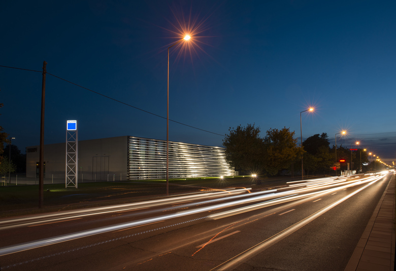 Trumpf Poland’s new headquarters in Warsaw, housing offices and exhibition areas, represent a prototype for an economically constructed industrial building combining a simple form with complex surfaces and differentiated interior spaces.