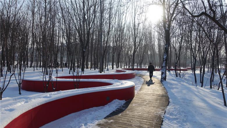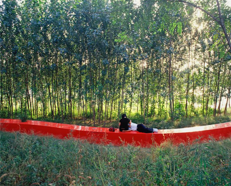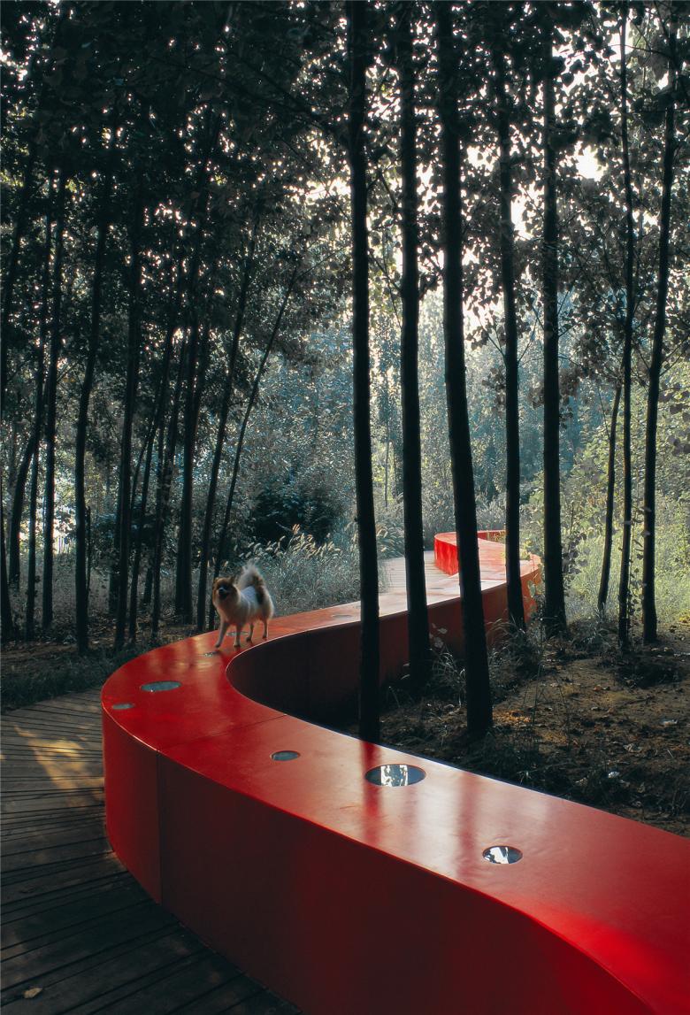 Against a background of natural terrain and vegetation, is a “red ribbon” spanning five hundred meters, which integrates the functions of lighting, seating, environmental interpretation, and orientation. While preserving as much of the natural river corridor as possible during the process of urbanization, this project demonstrates how a minimal design solution can achieve a dramatic improvement to the landscape.