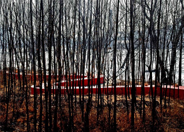 The bright red color of the ribbon lights up this densely vegetated site, links the diverse natural vegetation types and the four added flower gardens, and provides a structural instrument that reorganizes the former unkempt and inaccessible site. The natural site has been dramatically urbanized and modernized, two attributes that are highly sought after by the local residents while keeping the ecological processes and natural services of the site intact.