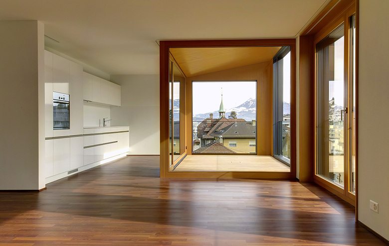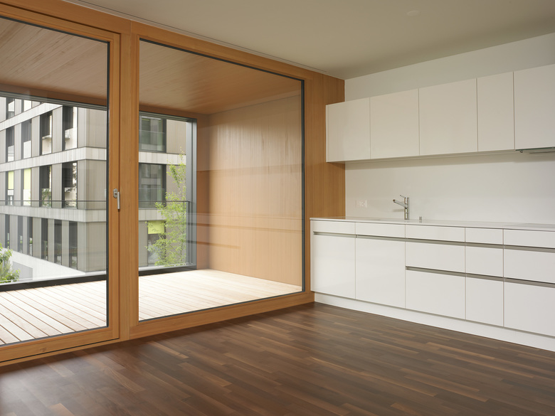 Die Überbauung Minoletti liegt am Fuss des Sonnenbergs und an der Schnittstelle städtischer und naturnaher Strukturen. Die beiden kubischen, zeitlos wirkenden Gebäude bilden den Auftakt zur Entstehung eines neu entstehenden Stadtteils zwischen Luzern und Kriens und strahlen urbanes Flair aus. Von aussen bestechen die Fassaden durch klare Linien und eine gewisse Strenge, gegen Süden hin werden sie durch grosszügige Fensterflächen durchbrochen und lassen viel Licht und Wärme herein. Insgesamt stehen 67 hochwertige Zwei- bis Fünfzimmer-Mietwohnungen zur Verfügung. Um den verschiedensten Lebenslagen und Raumbedürfnissen optimal entgegenzukommen, haben die Wohnungen unterschiedliche Grundrisse. Ebenso wurde bei der Planung der Wohnungen auf die Lage innerhalb des Gebäudes geachtet – so weist eine Eckwohnung einen anderen Raumplan auf als eine Hochparterre-Wohnung mittendrin. Sämtliche Wohnungen können mit einem ganz besonderen Highlight punkten: einer grosszügigen inliegenden Loggia, die mediterrane Stimmung verbreitet und Feriengefühle aufkommen lässt. Im Materialmix von Holz, Textil und Glas ausgestaltet ist sie eine grosszügige Erweiterung des Innenraums nach aussen. Ebenfalls allen Wohnungen gemeinsam ist die Verwendung edler, hochwertiger Materialien im Innenraum. Die Akazien-Parkettböden und die Wände und Decken sind schlicht und neutral gehalten: ein bunt gewobenes Tischtuch hier, das bordeauxrote Lieblingssofa da – der eigenen Gestaltungsfantasie sind kaum Grenzen gesetzt. Der Bereich Wohnen/Essen ist offen gehalten und wirkt dadurch besonders weitläufig. Küche und Bad präsentieren sich wie die übrigen Räume zeitlos und elegant. Die Kücheneinrichtung umfasst standardmässig eine Glaskeramik-Kochfläche, einen Geschirrspüler und einen Kühlschrank mit separatem Eisfach. Helle Plattenbeläge und schlichte Armaturen sorgen im Bad für eine angenehme Atmosphäre.