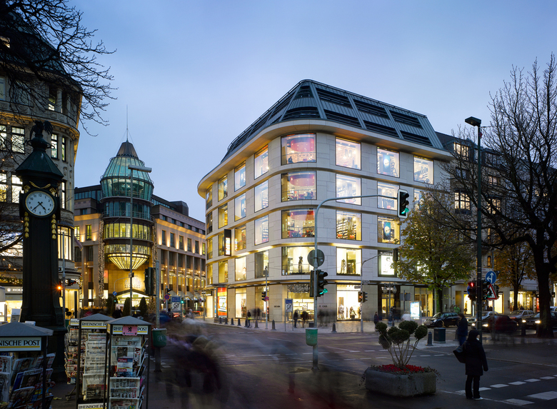 Königsallee No. 18 is the Dusseldorf address for a new building planned and realised by sop architekten and home to the Mayersche bookstore. The location could hardly be more prominent: right where the Kö and pedestrian street to Schadowstrasse meet. This created high requirements for design of the building as well as for safeguarding the listed status of the entire ensemble of Königsallee.