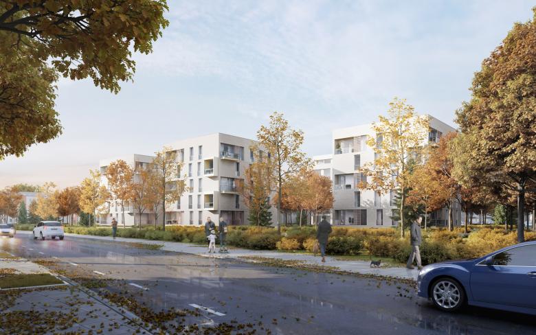 Die modulartig aufgebauten, zwei bis fünf Zimmer großen Wohnungstypen, von denen mehr als die Hälfte über familienfreundliche Grundrisse verfügen, sind allesamt barrierefrei und zu rund 40 Prozent gefördert oder preisgedämpft, um ein generationsübergreifendes, integratives Zusammenleben zu ermöglichen.