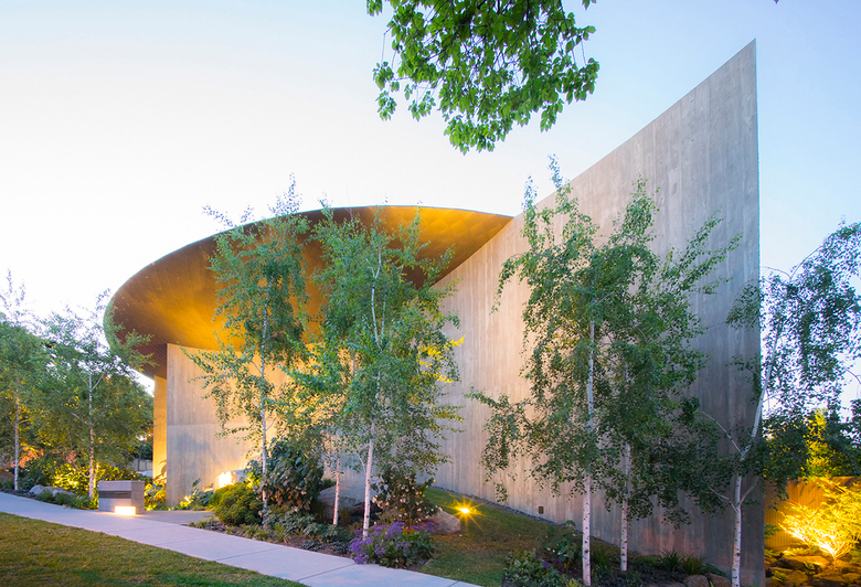 The verdant, diverse and textured forms of the garden provide a contrast to the muscular architectural concrete form of the building. The white painterly bark and delicate foliage of Silver Birches at the property’s Towers Road frontage act as a foil against the monumental raw concrete façade and provide filtered views through to the building.