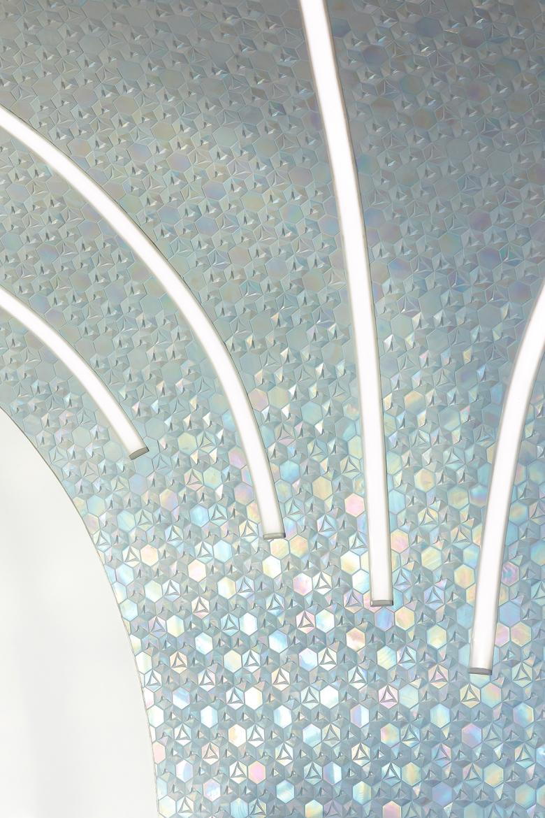 The use of this uniquely Qatari ornamentation and material palette assists in dividing the large interior spaces and guiding pedestrians towards the transient spaces. The integrated light lines amplify the experience, function as natural wayfinding elements and contribute to a unique ambience for the Metro Network.