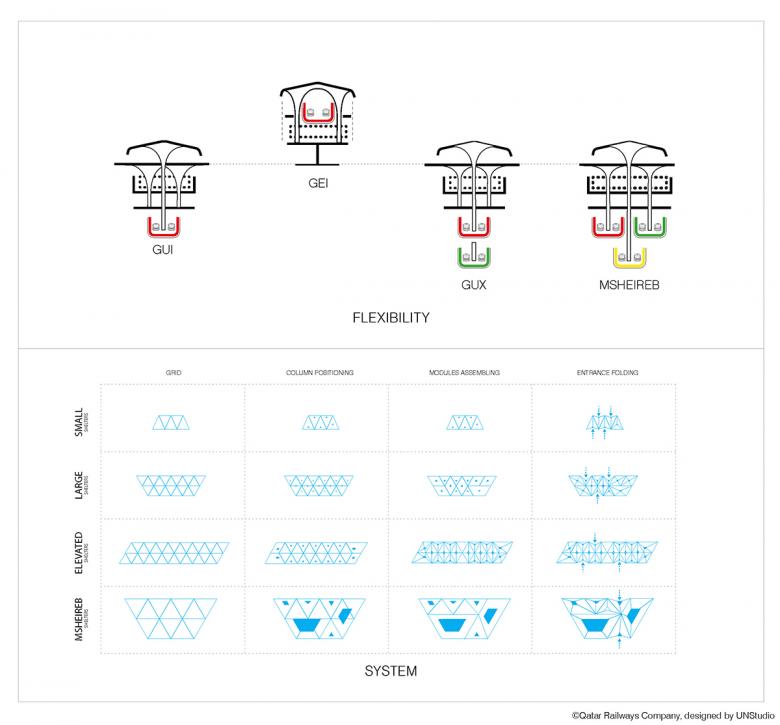 UNStudio created a vision for the station designs of the all-new Doha Metro Network, and collaborated with the Qatar Rail Architecture Department on the development of an 'Architectural Branding Manual': an extensive set of design guidelines, architectural details and material outlines to assure the spatial quality and identity of the network. This comprehensive design manual served as a set of guidelines that were used by the appointed D&B contractors to deliver the different station types for the first phase.