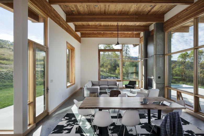 This project captures the amenities of the site in a sustainable and cost-effective design that fits beautifully in its surroundings. The house received a HERS score of 41, which means it performs 59% better than the International Energy Code.