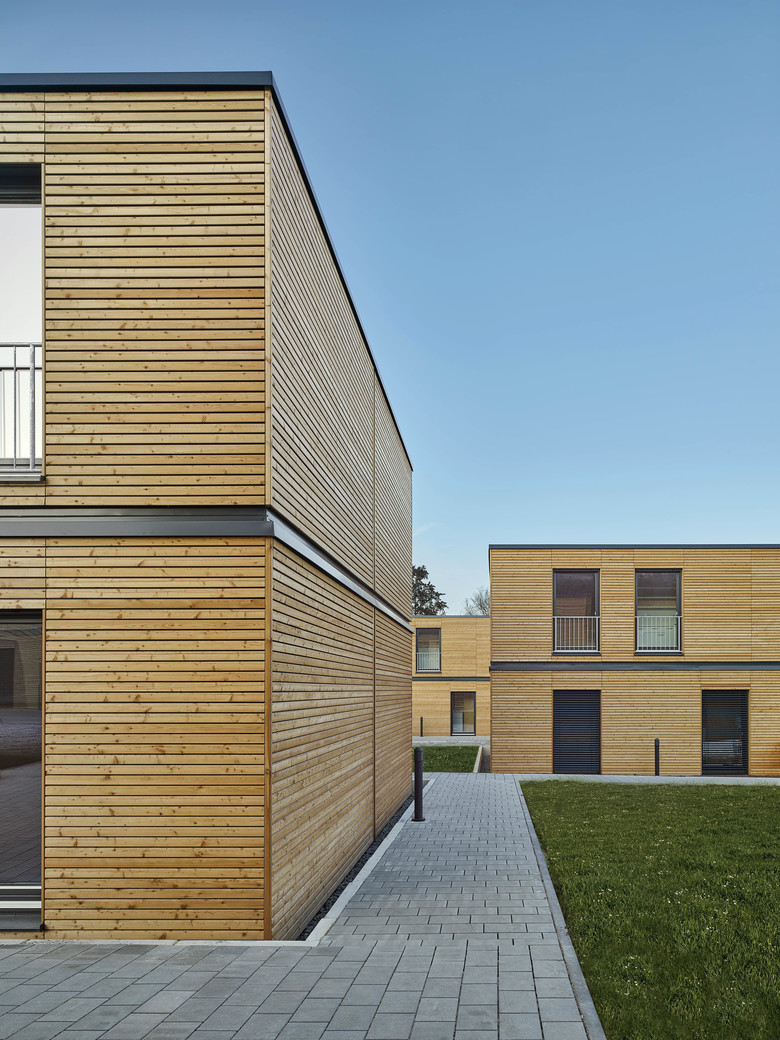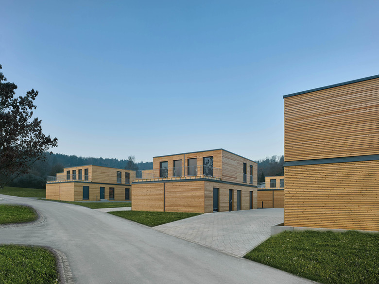 Built using the timber frame construction method, the aktivhaus modules were stacked to a height of two storeys on a gently rising plot of land that enjoys views of the neighbouring vineyards. As well as adapting the development to the topography of the site and the urban setting, it was also vital to design the exterior spaces in such a way that would make the areas surrounding the properties just as pleasant for residents to spend time in as the interiors of the structures themselves. The modules are intended to be used for approximately 3 years to provide longer-term accommodation for refugees fleeing the Syrian civil war. They can easily be converted to serve as social housing at the end of this period by carrying out a handful of internal modifications. As well as the residential units themselves, the housing development includes a technology module, two community rooms and a multifunctional space that contains such equipment as washing machines and dryers.