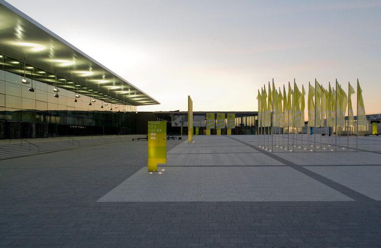 The New Exhibition Centre venue is characterized by minimal use of the landscape, short paths and exhibition halls with distinctive curved roofs. The Messepark’s wedge shape makes it easier to get one’s bearings. Changes in level create ideal access for loading and unloading. The congress centre and the multifunction hall - with an outline like a circus big top – are visually distinct from the exhibition halls. The planted multi-storey car park rises above the autobahn and the planned ICE line and acts as a kind of “super sign” for the venue. The Neue Messe at Stuttgart airport responds to the topography of its surroundings, and makes sensitive use of ecological resources. A solar power array, 40,000 metres in size, is integrated into the roof. The structure’s free, curved lines are underpinned by a clear, rational formal vocabulary. The whole complex looks light and expansive.