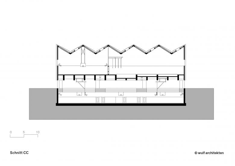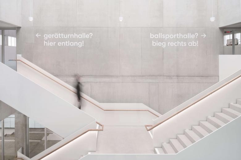 In order to combine five gym spaces of different sizes in a clearly defined and freestanding structure, the facilities were stacked: The base of the new building houses the lobby, bleachers, and three-court gymnasium, while the upper floor accommodates the halls for ball sports and gymnastics along with ancillary spaces. The openly designed building is accessible from the north, east, and west. The glazed ground floor forms a transparent juncture to the public space with the adjoining schools and sports fields. The sports center is a contemporary facility tailored to the needs of athletes and is ideally suited for competitions and other sporting events, thus enabling it to enrich Überlingen’s sports landscape.