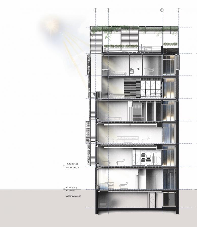 The goal of this renovation of, and addition to, a residential townhouse in SoHo rethought how a building could actively contribute to a more sustainable urban realm.
