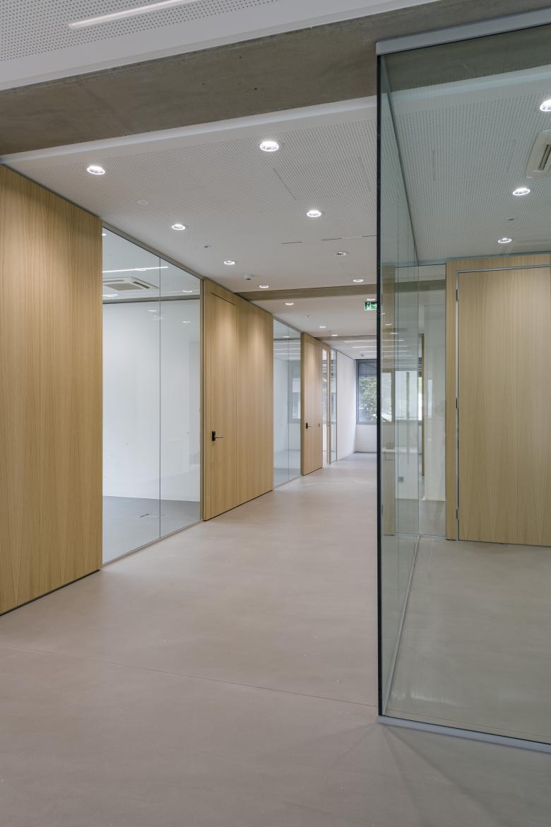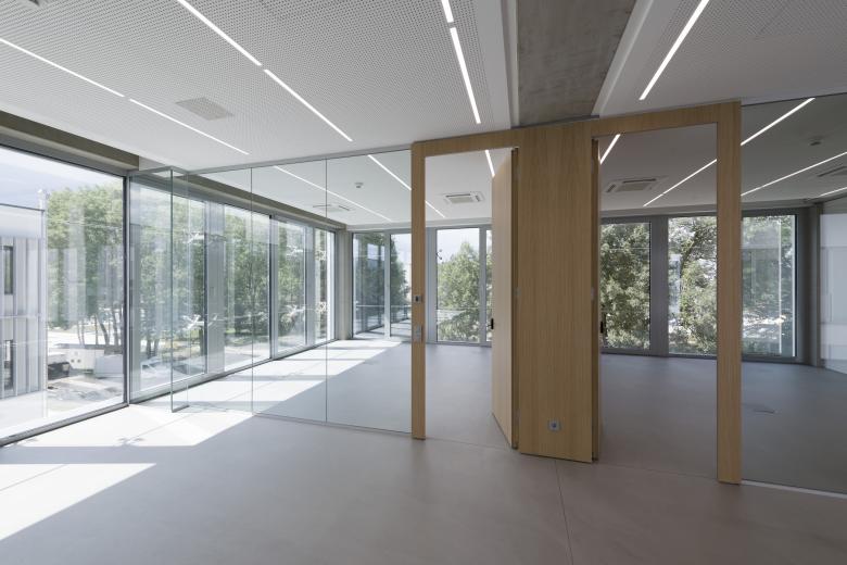 Mitte des Gebäudes, was in Kombination mit der Doppelfassade und den Dachterrassen zu einer angenehmen, exklusiven und inspirierenden Arbeitsumgebung führt.
