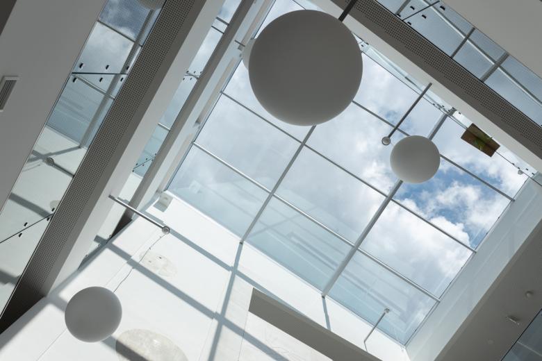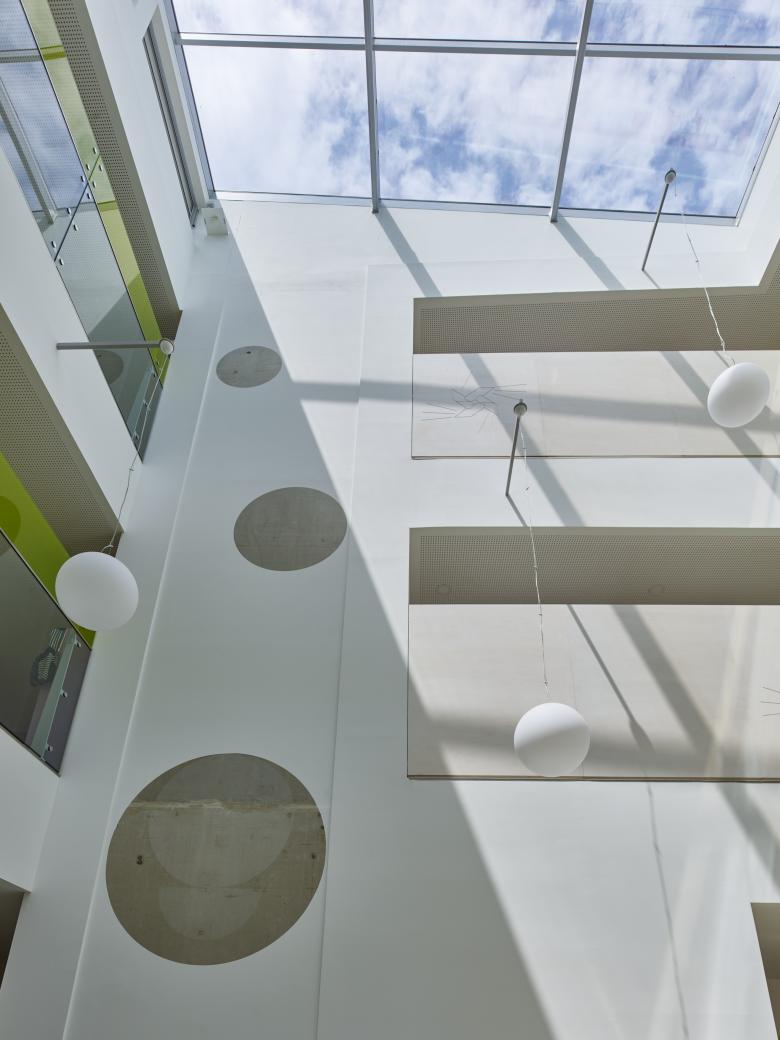 die dahinter liegenden Funktionen hervorheben. Somit sind Akzente im Gebäude gesetzt, die die dahinter liegenden Funktionen hervorheben.