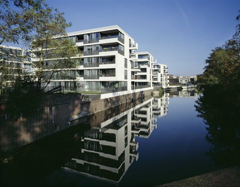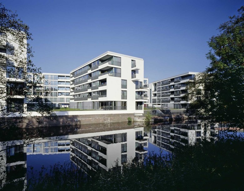 Das Grundstück hat durch seine Lage am Flusslauf der Bille ein besonderes Flair, allerdings bei gleichzeitiger Lärmbelastung durch den Bahndamm. Eine winkelförmige 5 bis 6-gesch. Bebauung mit Orientierung der Wohnungen zum ruhigen Hof bietet einen Schallschutz zum Bahndamm und zum Billebad. Zwei senkrecht zur Bille stehende Bauten ermöglichen allen Wohnungen eine Teilhabe an der Uferlage. Zwischen den Bauten spannt sich eine großzügige, begrünte Angerfläche auf, die zur Erschließung und als Kinderspielplatz genutzt wird.