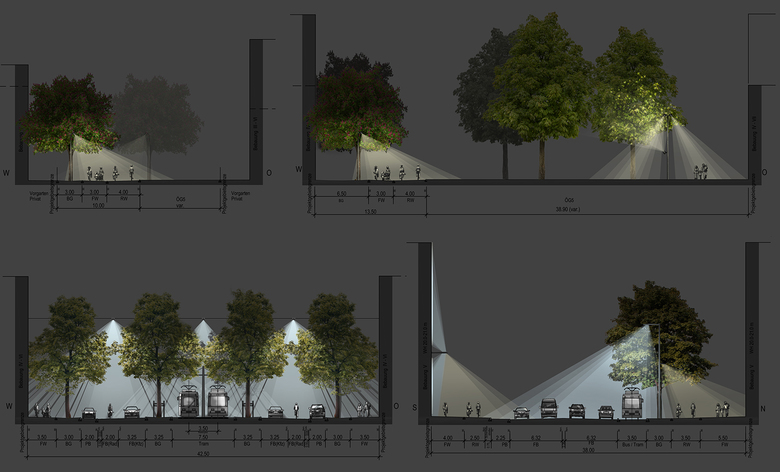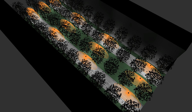 Grundlagen | Neben der Beachtung der gängigen Maßnahmen zur Verkehrssicherung gilt es, bei der Beleuchtung von Straßen, Wegen und Plätzen, das Sicherheits- und Wohlbefinden bei Nacht zu fördern, sowie den optischen Komfort unter Berücksichtigung ökologischer und ökonomischer Aspekte zu optimieren. Alleine die Empfehlungen von Normen und Regelwerken zugrunde zu legen und auf dieser eine energieoptimierte Ermittlung maximaler Mastabstände durchzuführen, ist hierbei nicht zielführend. Es ist entscheidend, die Möglichkeiten moderner Lichttechniken in das optimale Verhältnis zu den geometrischen und visuellen Gegebenheiten zu setzen. Hierbei ist die ausgewogene Betrachtungsweise zwischen Lichtpunktabstand und –höhe, möglicher Verschattung durch Bäume, geringer Blendungsgefahr, wirtschaftlichem Betrieb und Vermeidung von Lichtverschmutzung von hoher Wichtigkeit.