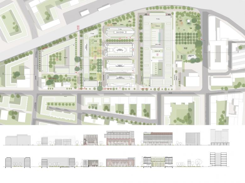 Dazu schreibt die hochkarätige Jury: "Die städtebauliche Konzeption kann überzeugen, weil es auf die umgebenden Stadträume angemessen reagiert, die innere Vernetzung gewährleistet und zugleich eine klare Strukturierung der einzelnen Teilbereiche schafft. (...) Insgesamt stellt der Entwurf einen überzeugenden Beitrag zur gestellten Aufgabe dar, weil er überzeugend auf den Ort und seine Rahmenbedingungen reagiert, die Anforderungen an eine zukunftsfähige Arbeitswelt und -umgebung gut räumlich übersetzt und zu einem integralen Baustein der City-West wird. (...) Die Webstruktur des öffentlich nutzbaren Raums in der Fußgängerebene ist über das Gesamtareal überzeugend dargestellt. Grünflächen und befestigte Wege sind mit differenzierten Aufenthaltsmöglichkeiten verbunden und bieten über unterschiedliche Vegetationsbereiche eine Bereicherung in den jeweiligen Nutzungszonen. Die Arbeitsplatz- und Wohnqualität trägt zu einem neuen Campusgedanken mit zu erwartender hoher Identifikation bei. (...) " berichtet die Jury mit den Fachpreisrichter:innen Prof. Michael Schumacher, Prof. Zvonko Turkali, Prof. Dr. Maren Harnack, Jon Prengel, Prof. Cornelia Bott.