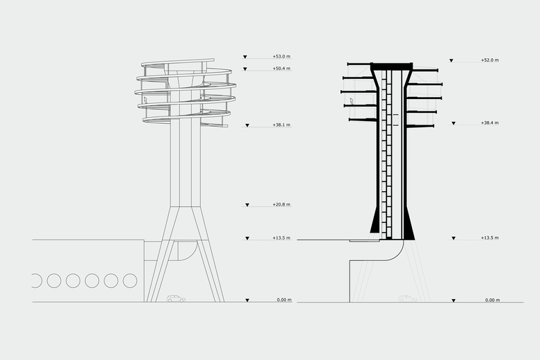 Das selbst initiierte Architekturprojekt in Basel, Schweiz, wurde 2012 mit dem Ziel entworfen, eine neue Nutzung für den ungenutzten Abluftkamin des Horburgtunnels vorzuschlagen. Das Potenzial des Projekts liegt in seiner Fähigkeit, als Wahrzeichen für die Region und als Identifikationsfigur für das neue Erlenmatt-Quartier zu dienen und gleichzeitig einen einzigartigen und nützlichen Raum für die Stadtbewohner zu schaffen.