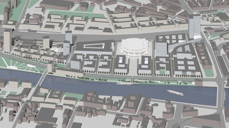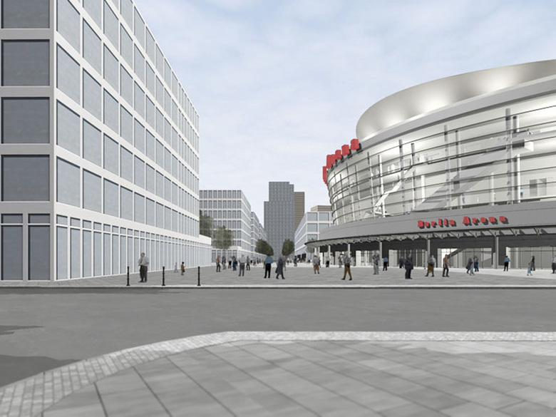 Nach dem 1. Preis im kooperativen Gutachter- verfahren im Jahr 2002 wurde im Jahr 2003/2004 in enger Zusammenarbeit mit der Senatsverwaltung für Stadtentwicklung und dem Bezirk der Masterplan als Grundlage für die Erstellung der Bebauungspläne erarbeitet. Die Anlage der Straßen und Plätze wurde in den Jahren 2005-2007 realisiert, die O2-World wurde im September 2008 eröffnet.
