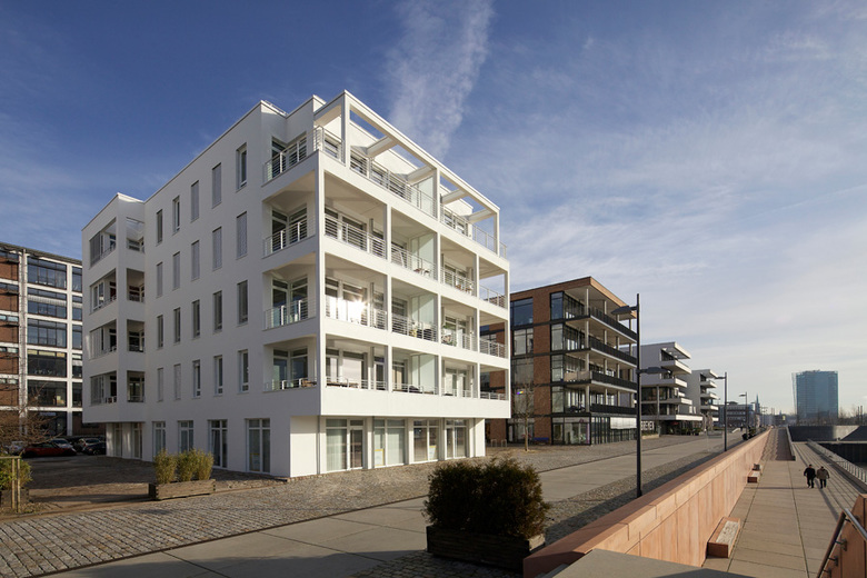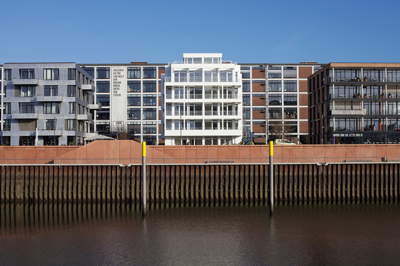 Die städtebauliche Planung am Europahafen in Bremen wird mit dem Neubau dieses Wohn- und Geschäftshaus als letzten Baustein komplettiert. Innerhalb der gesamten neuen Bebauung bildet das Projekt den einzigen Wohnungsbau am Hafen. Das Bild der hafentypischen Architektur und der maritimen Tradition wird zum Leitmotiv. Elemente des Schiffbaus werden in die Architektur aufgenommen.