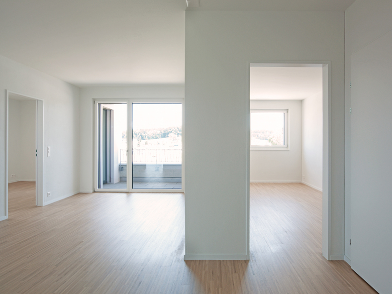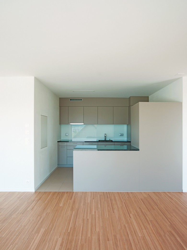 Die Wohnungen des 3-Spänners sind so angelegt, dass alle von einer dreiseitigen Ausrichtung profitieren können. Wegen der Lärmsitutation von Norden, sind auf den Regelgeschossen zur Strasse hin kleine Loggias zur Belüftung der angrenzenden Zimmer und zur Belichtung der Esszimmer gebaut.