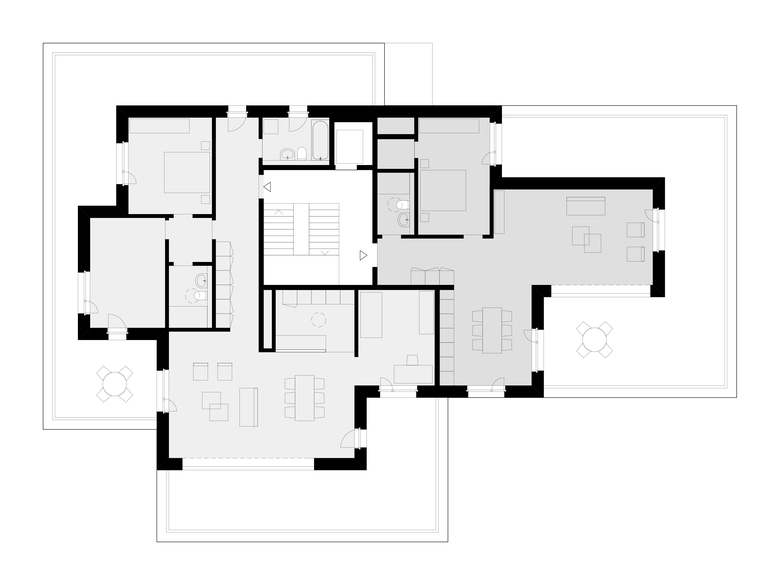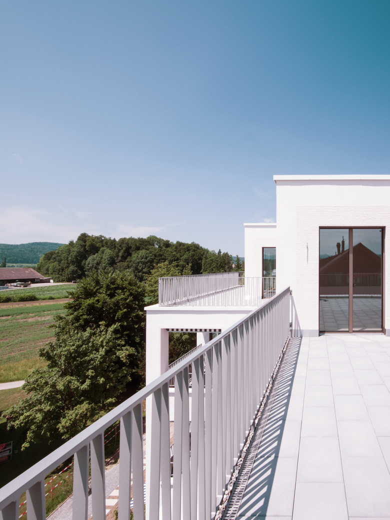 In jeder Ecke der Südfassade sitzt eine geschützte Loggia als privater Aussenraum.