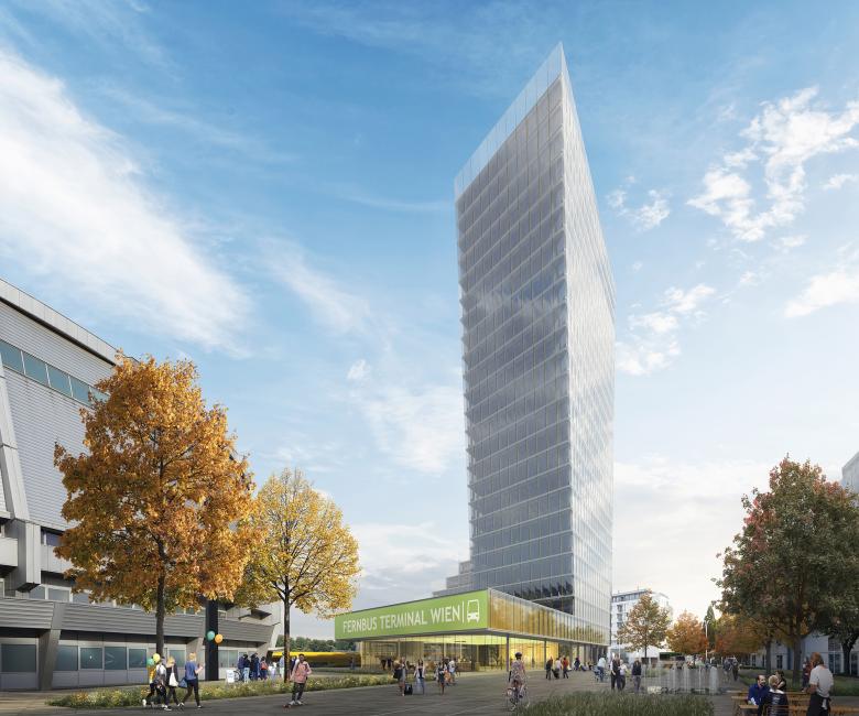 Die Position des Hochpunkts liegt an der Schnittstelle zweier stadträumlicher Richtungen, der überregionalen Hauptrichtung parallel zu Donau und Handelskai und der markanten Verschwenkung des Straßenverlaufs Engerthstraße/Marathonweg hin zum Donauufer. Die adaptive Gebäudegeometrie basiert auf der Aufnahme dieser beiden Richtungen: Im oberen Bereich des Hochhauses, der auch aus der Ferne erlebbar ist, wird die Gerade fortgeführt, im Sockelbereich passt sich das Gebäude der unmittelbaren Umgebung als Kurve an.