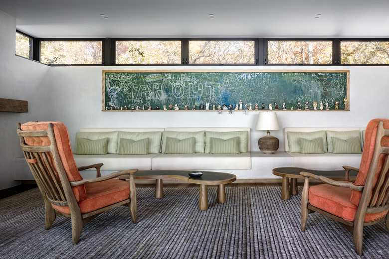 A sense of intimacy is created with nook-like rooms, hand-worked details and a raw materiality-- a counterpoint to the expansive glazing and crisp lines. Assuming the roles of interior designer and builder allowed the architect to refine framed views, and incorporate careful punctuations of color and texture.