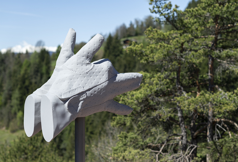 Micheal Fliri’s sculpture of a wolf takes part of this place – it wanders almost randomly across the rocky dome. The image has a twofold meaning – the sculpture and its shadow play.