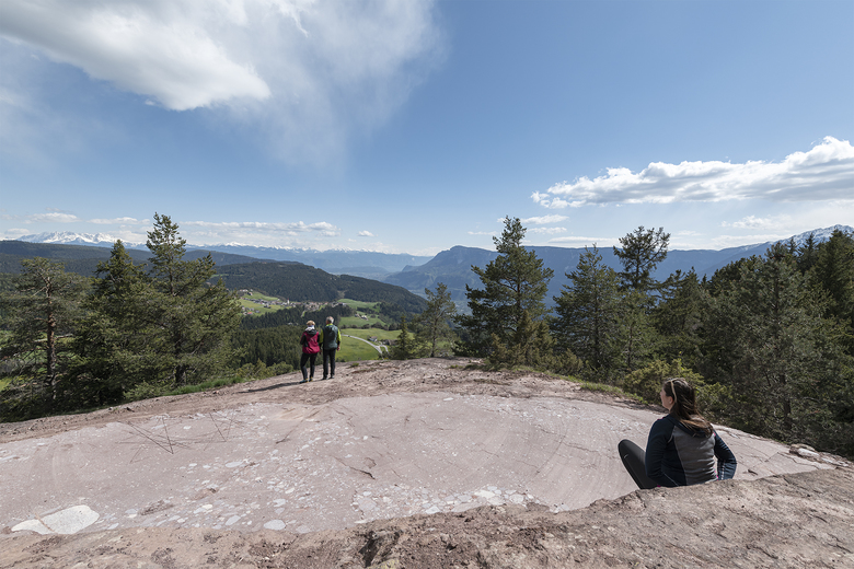 The three Knottn – red porphyry-hills – emerge suddenly from the forest- and meadow-landscape in Verano and lend the area its distinctive character. The circular hiking trail „Knottnkino3“ connects these three rock formations with their newly created resting areas.