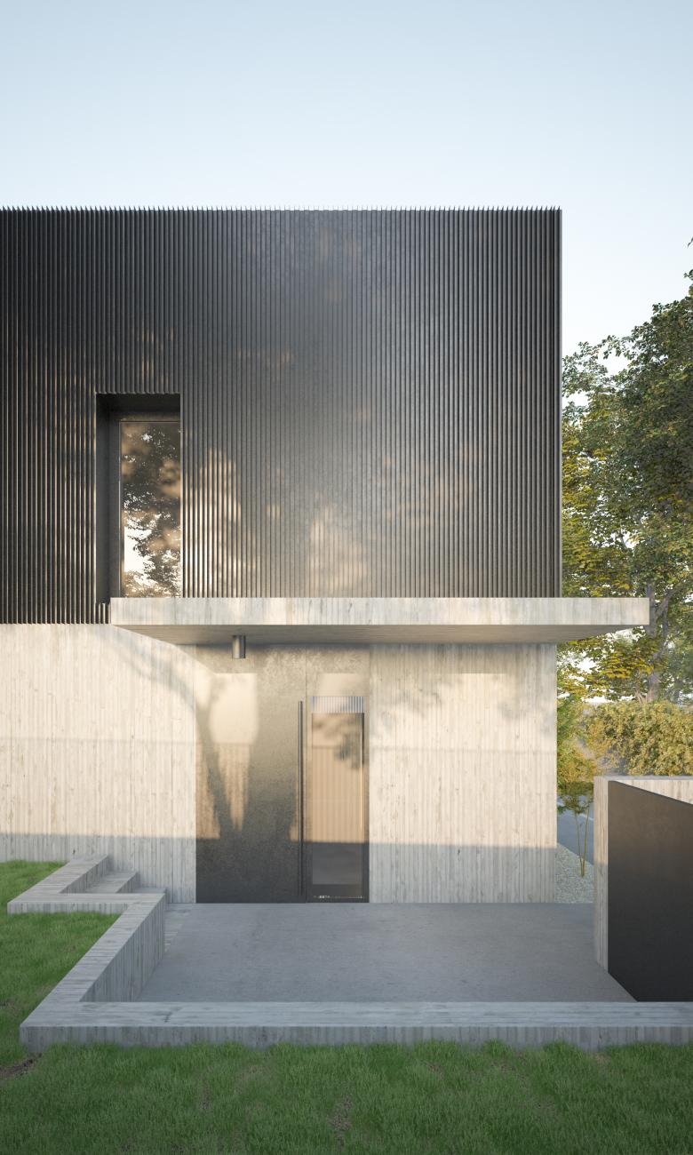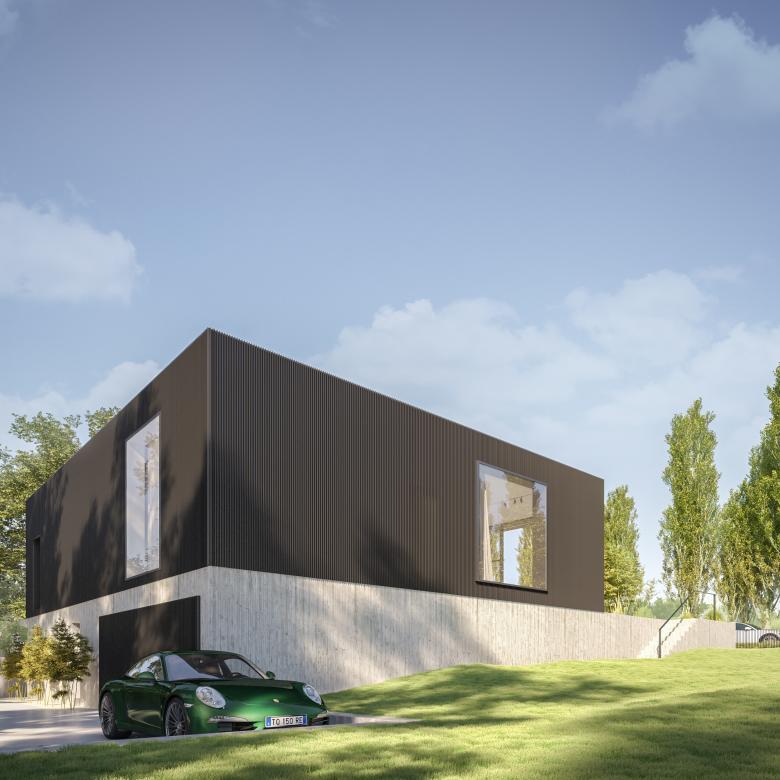 Il progetto prevede la costruzione di un’abitazione singola in un lotto adiacente il fiume, caratterizzato da una forte pendenza che raccorda la quota stradale con quella dell’argine.