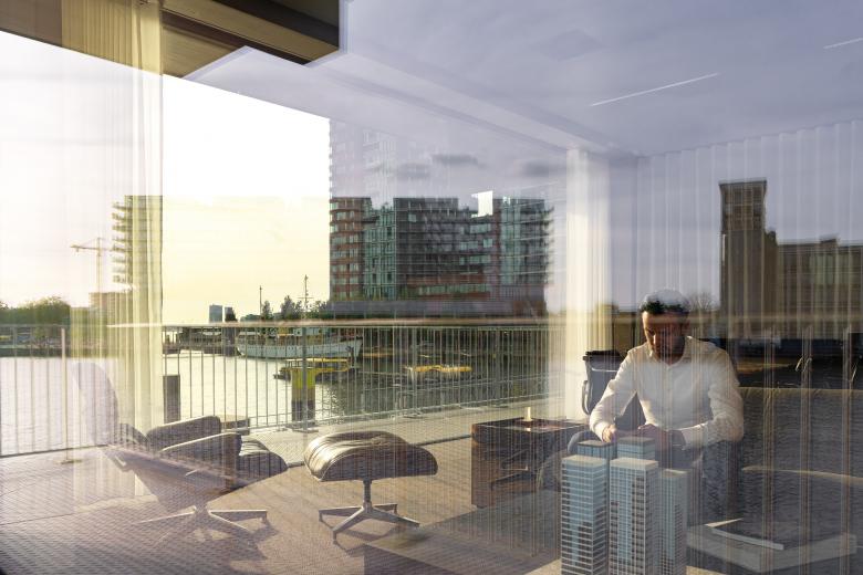 ‘Designing a sustainable, floating office building was a very challenging commission and we approached it in an integrated way. By using the water of the Rijnhaven to cool the building, and by using the roof of the office as a large energy source, the building is truly autarkic.’